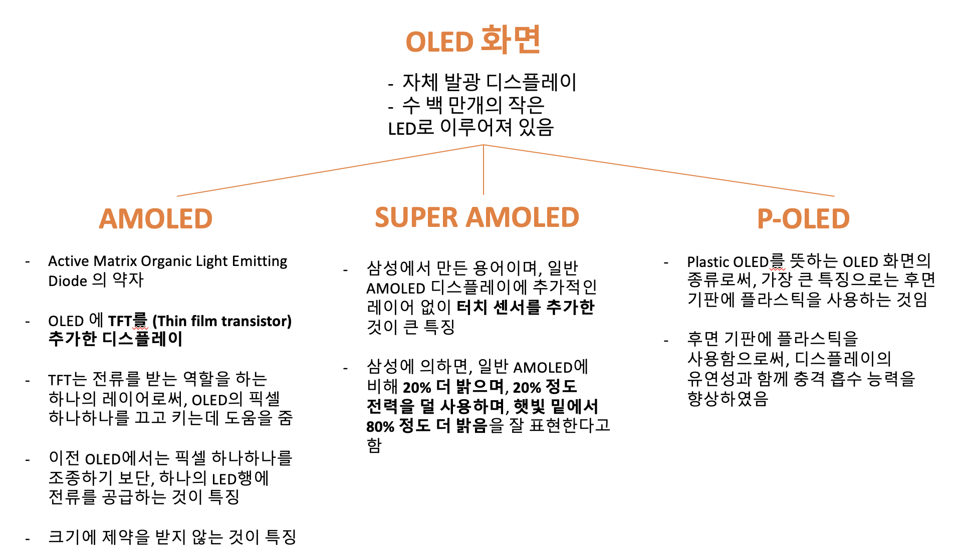 AMOLED, SUPER AMOLED, P-OLED는 다 OLED에서 파생된것입니다.